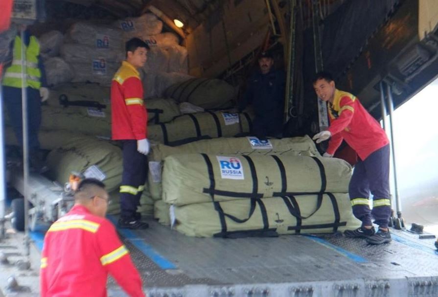 Những vật phẩm này được vận chuyển bằng chuyên cơ của Bộ Phòng vệ dân sự, Tình trạng khẩn cấp và Khắc phục hậu quả thiên tai Liên bang Nga.