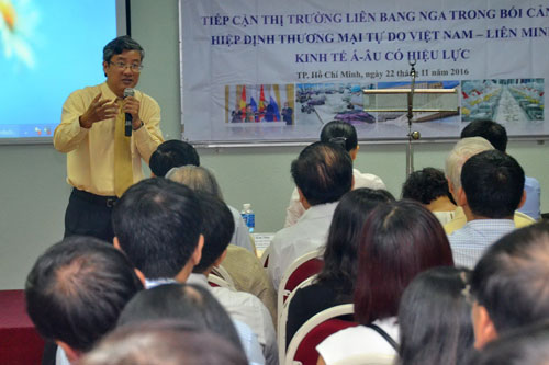 Tại hội thảo “Tiếp cận thị trường Liên bang Nga trong bối cảnh Hiệp định thương mại tự do Việt Nam - Liên minh Kinh tế Á - Âu (VN - EAEU FTA) có hiệu lực” do Trung tâm WTO - Viện Nghiên cứu Phát triển TP HCM, Trung tâm Xúc tiến Thương mại và Đầu tư TP tổ chức sáng 22-11, các diễn giả cho biết hiệp định này sẽ mang đến cơ hội vàng cho xuất khẩu nông sản, thủy sản, dệt may, da giày, đồ gỗ… Việt Nam.