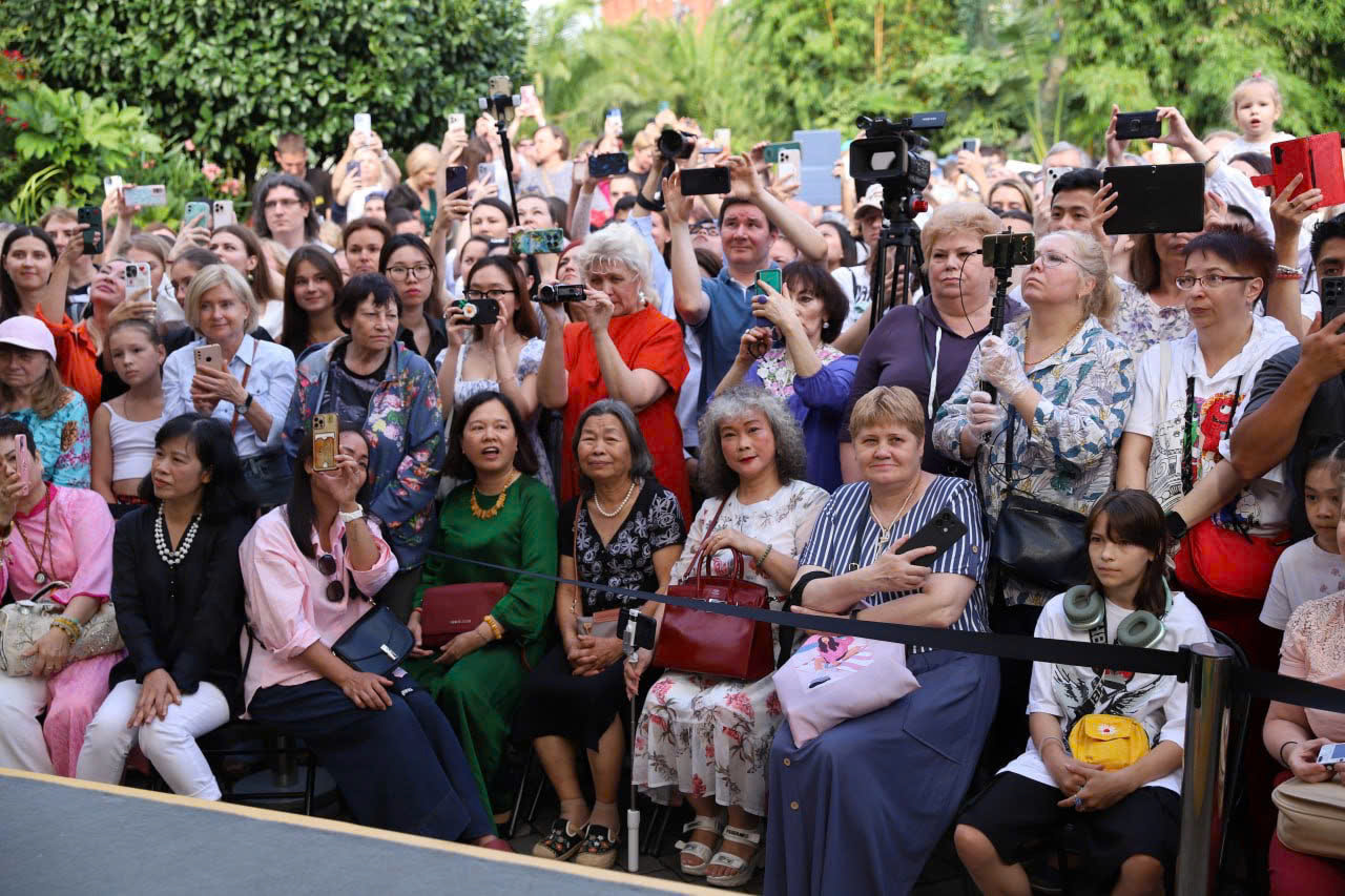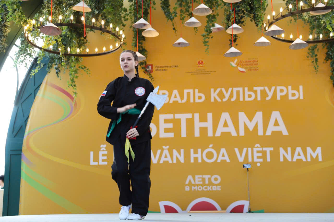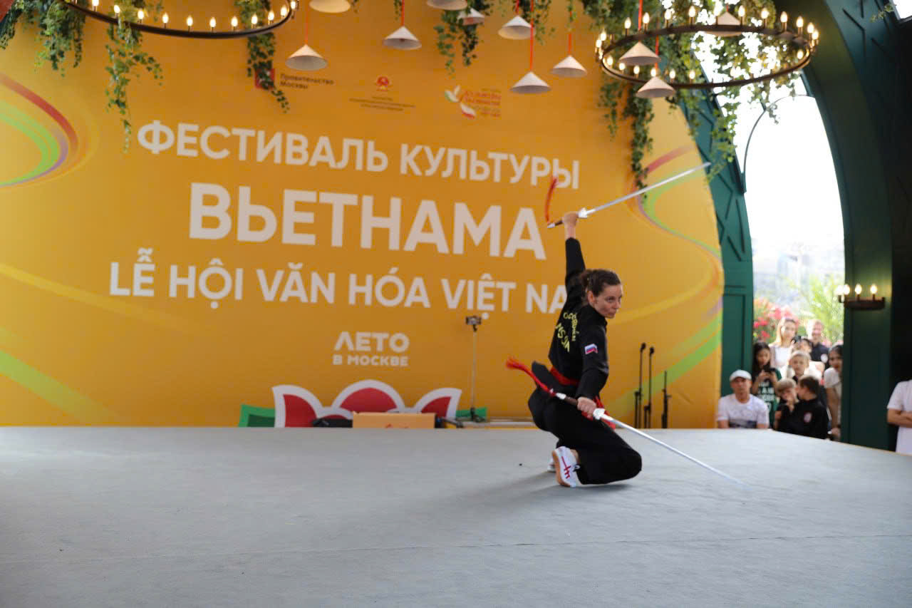 Giữa không gian lịch sử thiêng liêng, tiếng trống trận Tây Sơn vang lên hào hùng, nền nhạc “Hào Khí Việt Nam” dồn dập khơi dậy tinh thần bất khuất của dân tộc. Những bài quyền và kỹ thuật binh khí cổ truyền như thương, kiếm, côn nhị khúc, rìu chiến, phiến… được thể hiện uyển chuyển mà mạnh mẽ, giàu tính nghệ thuật và khí phách anh hùng. Hàng trăm khán giả Nga vây quanh sân khấu đã không ngớt vỗ tay tán thưởng, thể hiện sự ngưỡng mộ và tôn trọng đối với nền võ học Việt Nam.