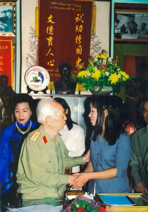 Đại tướng Võ Nguyên Giáp và tác giả bài viết (năm 2002).
