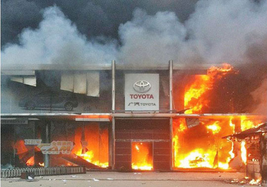 Một đại lý bán xe của Toyota bị đốt phá