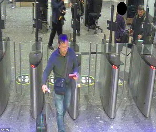 Hai người đàn ông Nga lúc này đang đi qua khâu kiểm tra an ninh tại sân bay Heathrow khi họ trên đường trở về Nga vào lúc 19h30, chỉ vài giờ sau khi người ta phát hiện cha con ông Skripal bất tỉnh ở công viên Salisbury.