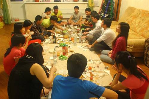 Nhóm SvIrk365 đến thăm một gia đình cô chú người Việt chiều 23 Tết âm lịch.