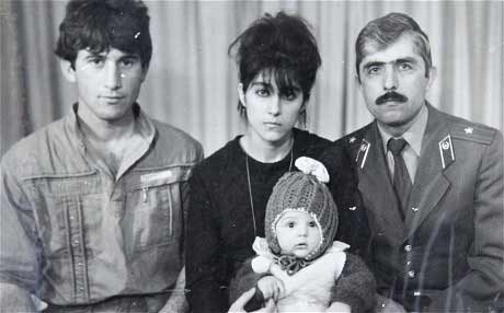 Tamerlan hồi bé trong bức ảnh chụp cùng bố mẹ và bác (bên phải).