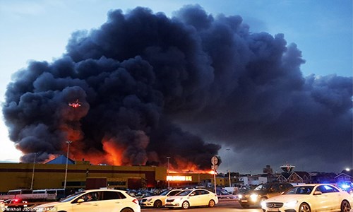Hiện trường cháy chợ kinh hoàng ở Moscow