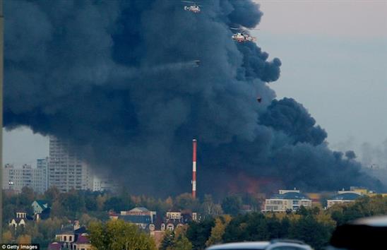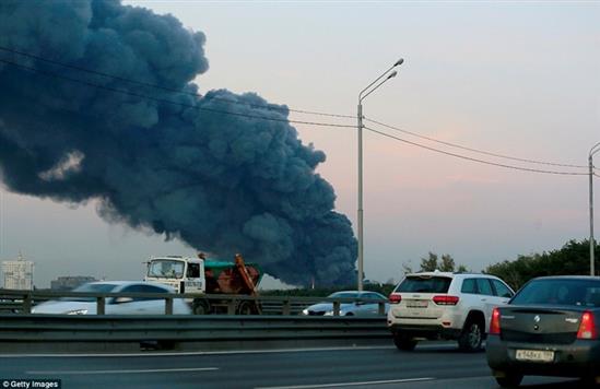 Vụ hỏa hoạn đã gây ra tình trạng ách tắc giao thông ở khu vực ngoại ô thủ đô Moscow. Ảnh: TASS.