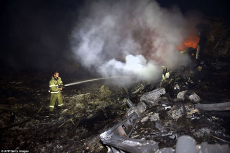 Hiện trường máy bay Malaysia rơi, tại khu vực do quân nổi dậy nắm giữ ở miền đông Ukraine, khu vực đang có nhiều cuộc giao tranh giữa quân chính phủ Ukraine và phe nổi dậy.