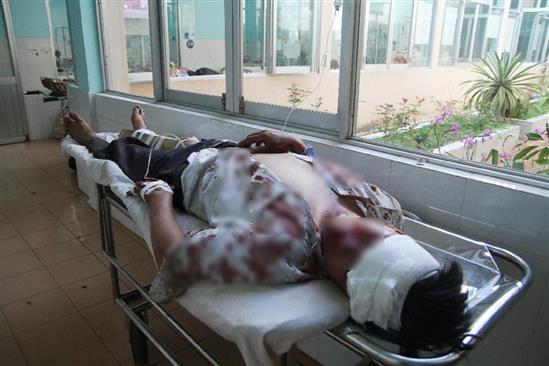 Đưa nạn nhân bị thương đi cấp cứu.