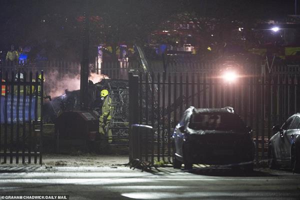 Trực thăng thuộc về chủ tịch câu lạc bộ bóng đá Leicester City bốc cháy sau khi rơi xuống bãi đỗ xe gần sân vận động King Power tại Leicester, khoảng 1 giờ sau trận đấu tối 27/10.