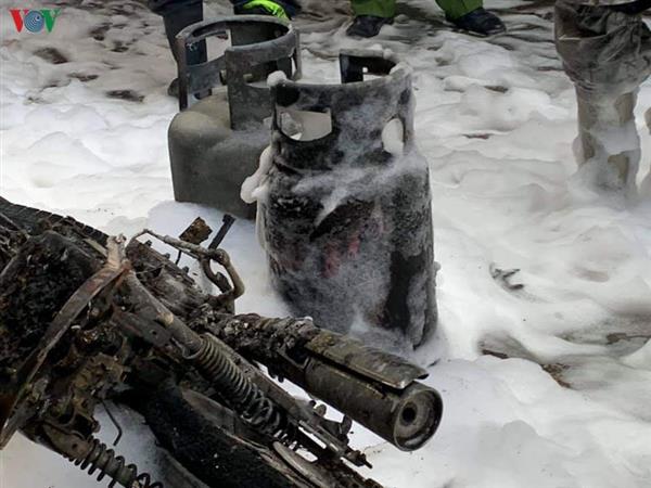 Theo nhân chứng, bình ga công nghiệp trên chiếc xe chở ga loại 1,25 tấn bị hở xì ga ra, bắt lửa với 1 bếp than tổ ong của cửa hàng bán đồ ăn sáng ở gần, bốc cháy dữ dội và lan sang 4 - 5 nhà dân.