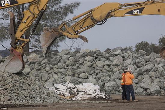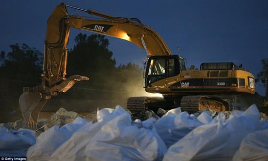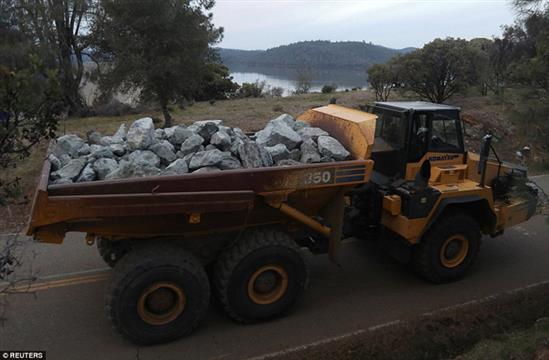 Các túi đá lớn dùng để vá đập Oroville. Ảnh: Reuters