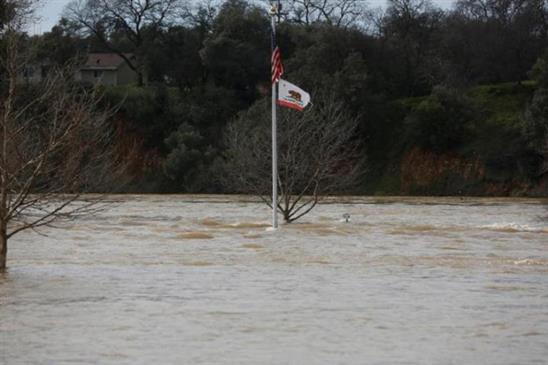 Nước lũ dâng cao khi nước từ hồ Oroville được xả ra. Ảnh: Reuters