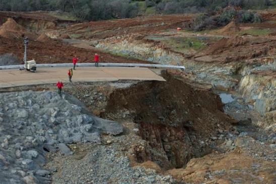 Tuyến xả của đập Oroville đã rút sạch nước để các cơ quan chức năng thăm dò khắc phục sự cố. Ảnh: Reuters