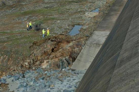 Việc sửa chữa khẩn cấp đang được tiến hành trên đập tràn chính và đập phụ. Ảnh: CDWR