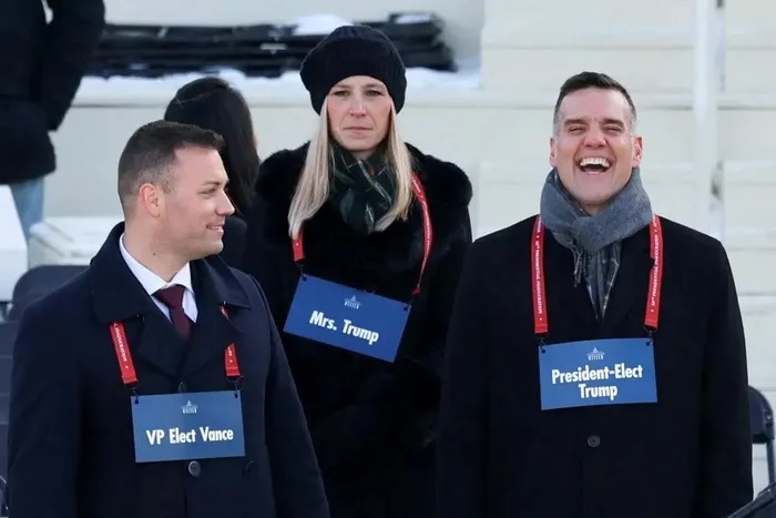 Theo Detroit Free Press, ông Donald Trump là người thứ hai, sau Tổng thống thứ 22 và 24 của Mỹ là Grover Cleveland, trở lại Nhà Trắng cho nhiệm kỳ thứ hai không liên tiếp. Trong ảnh: Các 'diễn viên' đóng thế cho Tổng thống đắc cử Donald Trump, phu nhân Melania Trump và Phó Tổng thống đắc cử JD Vance. (Nguồn: Reuters).