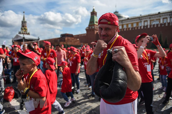 Hơn 4000 người đã tham gia buổi luyện tập boxing trong ngày boxing quốc tế lần thứ 3 (ngày 21/7) tại Quảng trường Đỏ ở Moskva, Nga, nhằm phá kỷ lục Guinness thế giới.