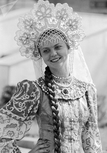 Cô gái Nga trong bộ trang phục truyền thống tại Olympic 1980.