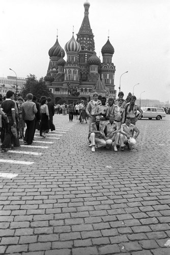 Các vận động viên của một đoàn thể thao chụp ảnh lưu niệm ở Quảng trường Đỏ khi tham gia Olympic 1980.