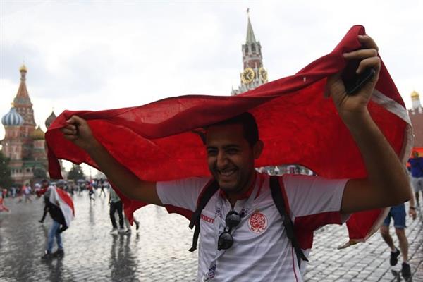 Một người hâm mộ bóng đá tươi cười trên Quảng trường Đỏ mùa World Cup năm nay.