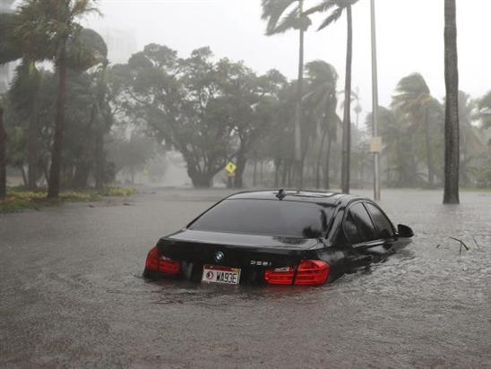 Chiếc xe BMW bị ngập trong biển nước tại Miami.