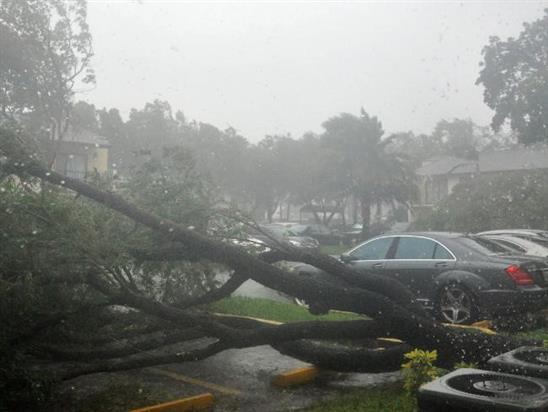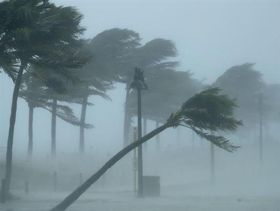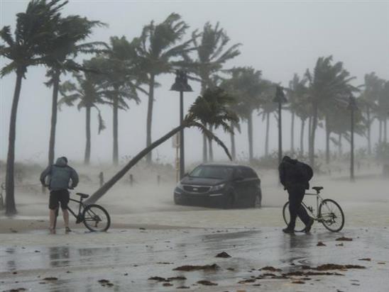 Bão Irma gây gió lớn làm đổ rạp nhiều cây cối ở ven bờ biển Miami.
