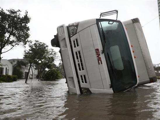 Sức tàn phá của bão Irma rất khủng khiếp, ngay cả những chiếc xe tải lớn cũng bị gió bão lật nghiêng.