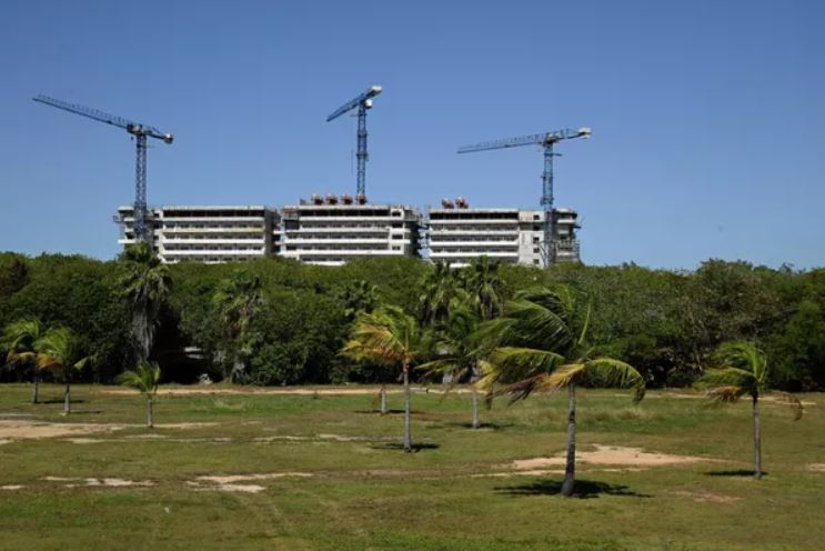 Cần cẩu xây dựng tại các công trường xây dựng khách sạn ở Cuba.