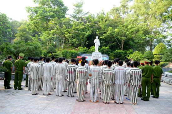 Các phạm nhân dâng hương trước tượng đài Bác trong ngày đặc xá - Ảnh: Hữu Khoa