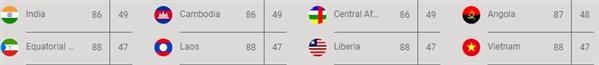 Việt Nam đứng ở vị trí 88 cùng Lào, Algeria, Liberia và Guinea Xích đạo, khi người dân được miễn thị thực tại 47 quốc gia. Năm ngoái Việt Nam xếp thứ 75 với hộ chiếu được miễn thị thực ở 48 quốc gia.
