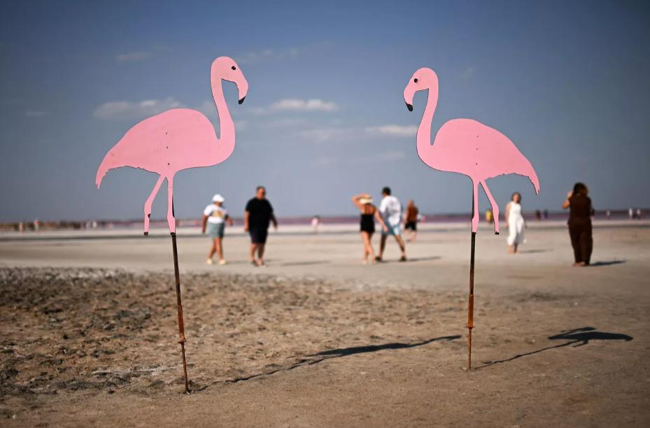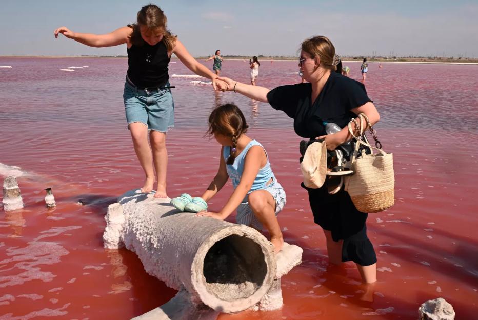 Du khách tại hồ Sasysk-Sivash gần Yevpatoria, Crưm