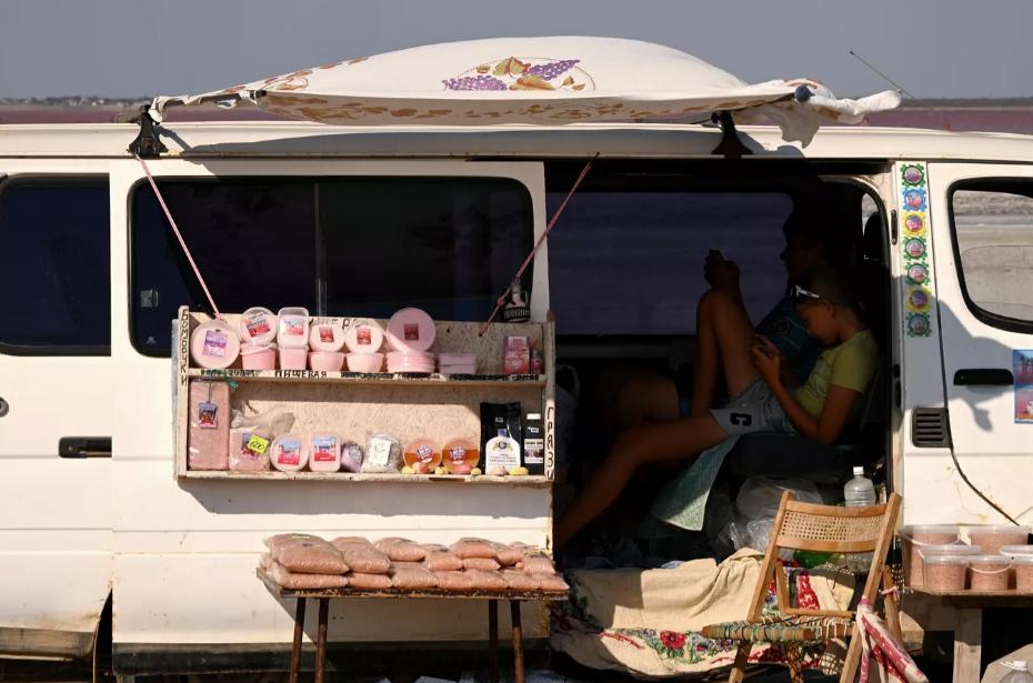 Bán muối hồng tại hồ Sasysk-Sivash gần Yevpatoria, Crưm