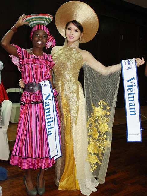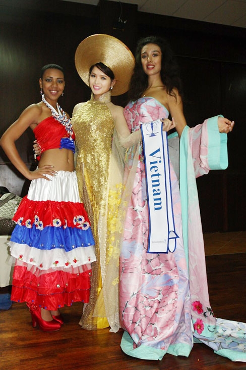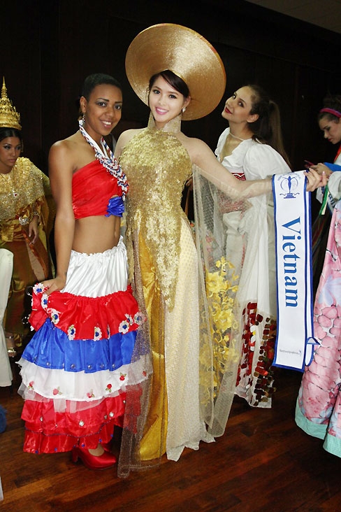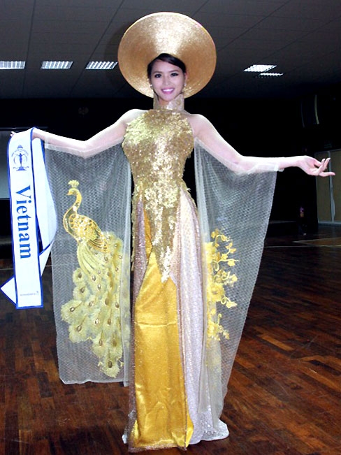 Hoa khôi Lại Hương Thảo trong chiếc áo dài dường như tỏa sáng và ấn tượng so với các nước bạn.