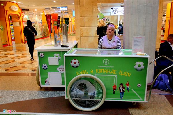 Có tới hàng tá chiếc xe bán kem và nước giải khát cũng được trang trí theo màu sắc sân cỏ rõ rệt, ở khu vực tầng một của nhà văn hóa.
