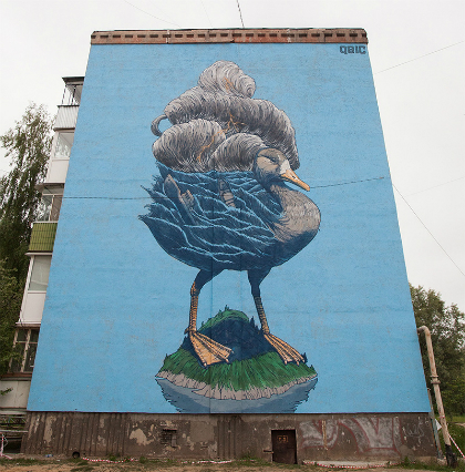 Họa sĩ trẻ Rustam QBic được biết đến ở Nga nhờ khả năng sáng tạo qua hàng loạt bức tranh siêu thực - vẽ trên các bức tường của những ngôi nhà cao tầng.