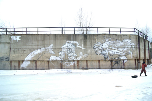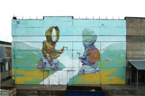 "Gặp gỡ", tranh vẽ trên đường phố Saint Petersburg, Nga.