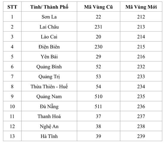 Chi tiết Mã vùng mới của 13 tỉnh, thành phố giai đoạn 1.