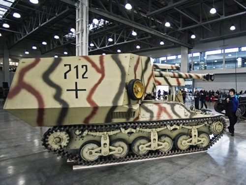 Du khách ngắm xem pháo tự hành cỡ nòng 150mm leFH 18-4 auf Geschutzwagen Lr.S