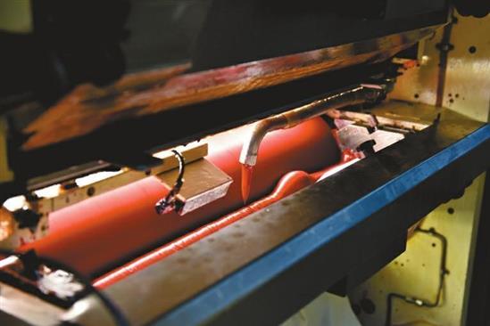 Một cỗ máy đang hoạt động trong nhà máy.