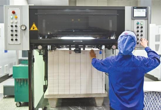 Một công nhân xử lý những xấp giấy trong nhà máy in tiền Thành Đô ở thành phố Thành Đô, tỉnh Tứ Xuyên, Trung Quốc.