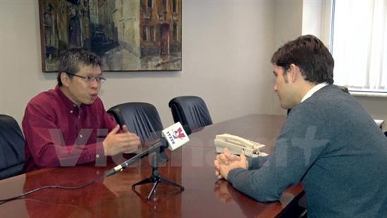 Ông Anton Tsvetov (phải) trả lời phỏng vấn. (Ảnh: Quang Vinh/Vietnam+)