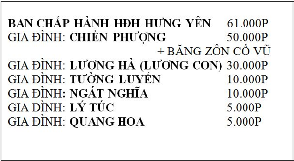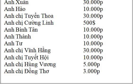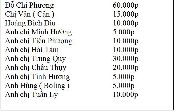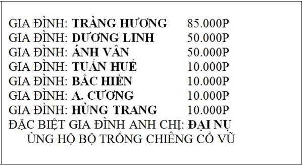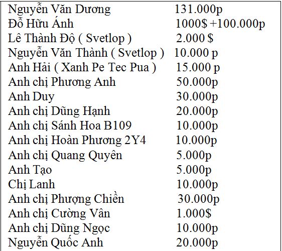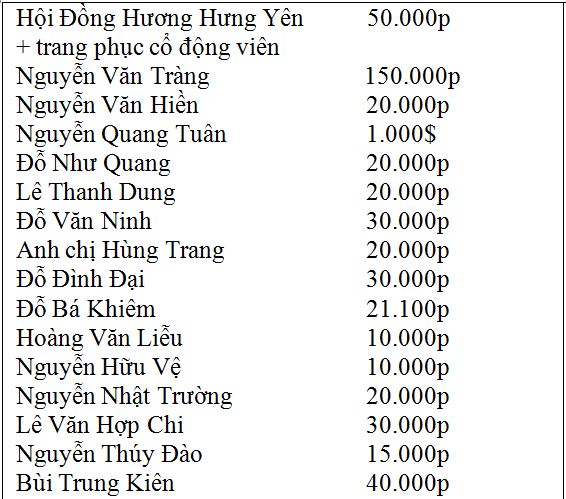 Danh sách ủng hộ đội bóng đợt 1 và 2: