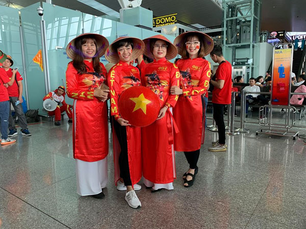Đã có hơn 300 CĐV đi trên các chuyến bay thẳng đặc biệt của Vietnam Airlines. Ảnh: KH