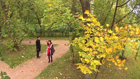 Một hình ảnh quen thuộc không thể thiếu đó chính là mùa thu vàng của nước Nga. Đằng sau hành trình “săn bắt” sắc vàng của đoàn làm phim là cả một câu chuyện dài được tiết lộ là vô cùng gian truân. Theo tiết lộ của đại diện đoàn làm phim thì thời điểm bấm máy, dù đã là mùa thu nhưng những cây Dương trong thành phố vẫn chưa vàng lá, cả đoàn phim phải di chuyển 80km, đến Sergiev Posad – một địa điểm du lịch nổi tiếng với búp bê Matrioshka, cũng là nơi có mùa thu đến sớm hơn để quay được những hình ảnh lá thu vàng đặc trưng của nước Nga.