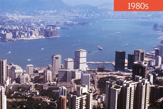 Hong Kong trở thành thuộc địa của Anh vào năm 1842, khi nhà Thanh nhượng lại vùng đất này cho Anh như khoản bồi thương cho cuộc chiến nha phiến. Năm 1898, Điều ước Bắc kinh lần hai cho phép Anh có thêm 99 năm cai trị Hong Kong. Bức ảnh cho thấy tốc độ phát triển nhanh chóng của thành phố này trong khoảng 30 năm với hàng loạt cao ốc mới. Ảnh: SCMP.