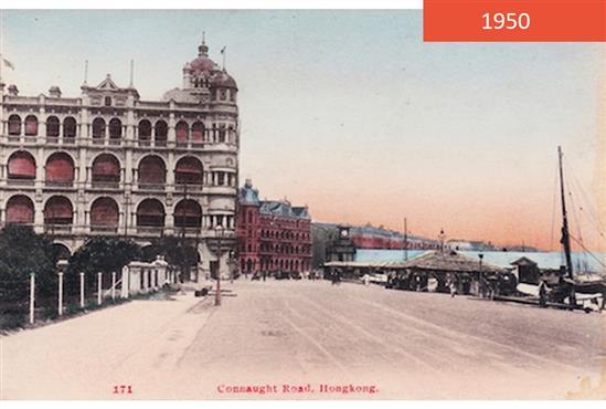 Rạng sáng 1/7/1997, Hong Kong chính thức được trao trả cho Trung Quốc. Sự kiện được đánh dấu bằng buổi lễ trang trọng diễn ra tại Trung tâm Hội nghị và Triển lãm Hong Kong. Trong ảnh, con đường mang tên Connaught vào năm 1950 hướng thẳng ra biển. Hơn 50 năm sau, khu vực này được san lấp và chứng kiến sự vươn lên của hàng loạt cao ốc. Ảnh: SCMP.
