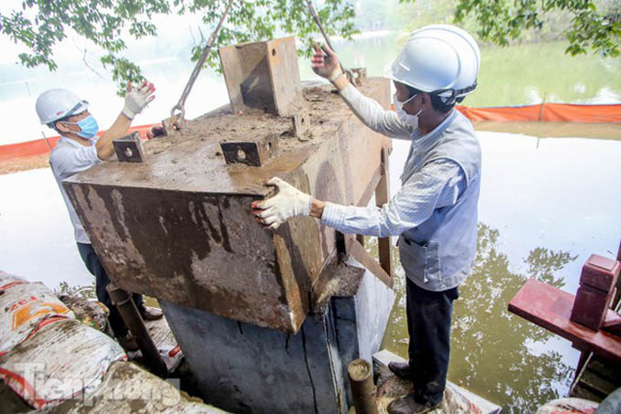 Hợp long công trình kè hồ Hoàn Kiếm bằng 1.500 khối bê tông cốt sợi
