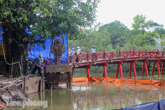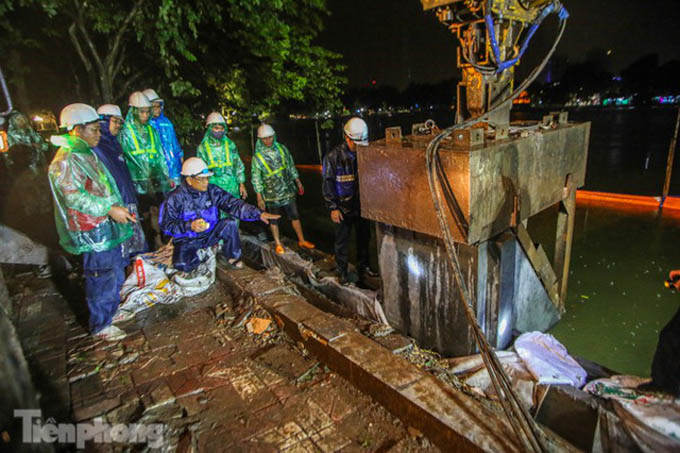 Trước đó, đơn vị thi công thực hiện 3 mũi thi công chia thành 6 ca được đưa vào hoạt động đồng thời suốt ngày đêm chỉnh trang kè hồ Hoàn Kiếm.