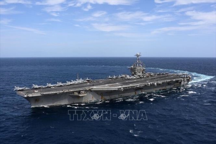 Tàu sân bay Harry S. Truman của Mỹ di chuyển ở phía Bắc Biển Đỏ. Ảnh: IRNA/TTXVN