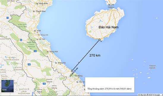Khoảng cách từ đảo Hải Nam đến bờ biển Việt Nam, góc chiến lược