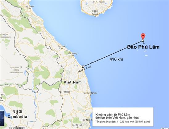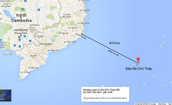 Khoảng cách từ đảo Phú Lâm và đảo Đá Chữ Thập không vượt quá 500 km